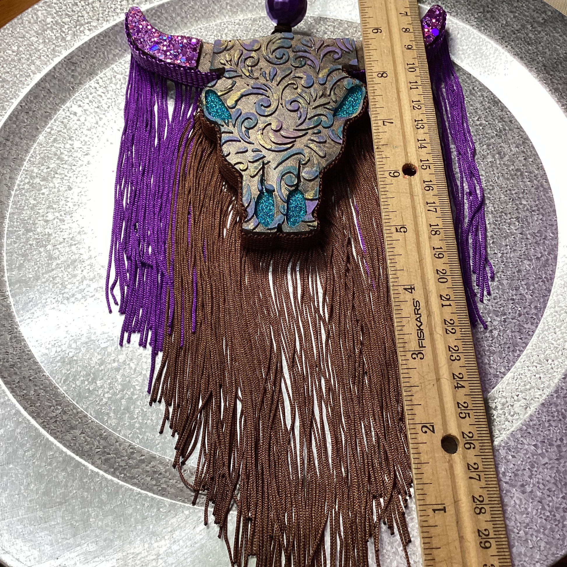 Tooled Leather Bull Skull With Fringe - Creamy Coconut Scent | Car Freshie | Car Freshy| Air Freshener | Car Accessory | Vehicle Decor | Gifts