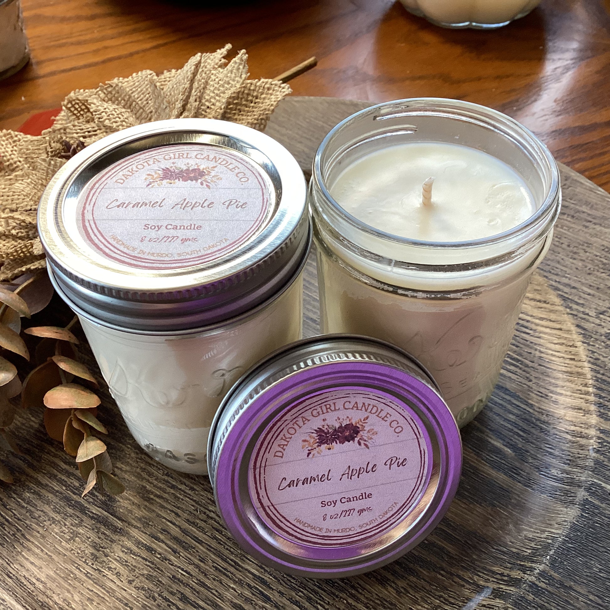 Caramel Apple Pie Scent - Soy Candle | Clear Mason Jar | Ball Mason Jar | Farmhouse Style | Country Style